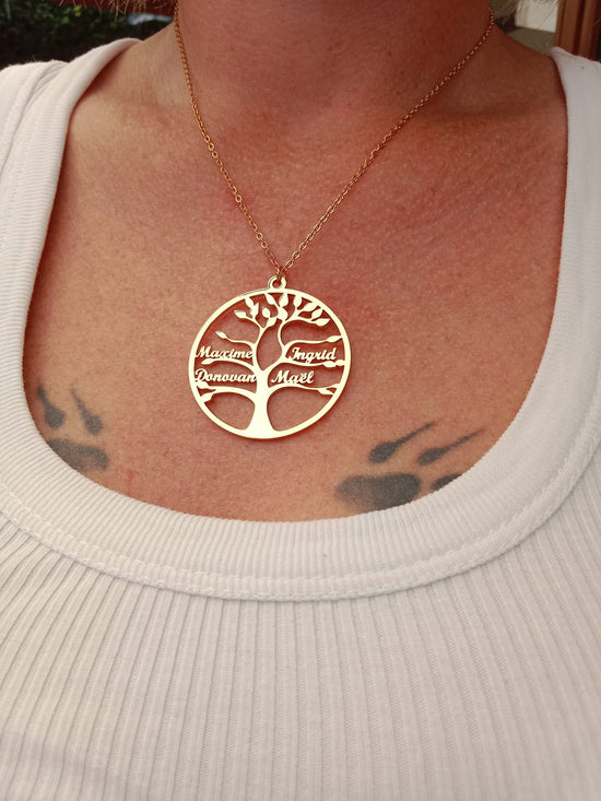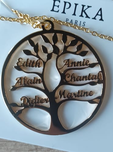 Et utrolig og unikt smykke! Ideen om å gravere navnene til familien min på dette treet er genialt. Det er en sentimental og trendy gave!